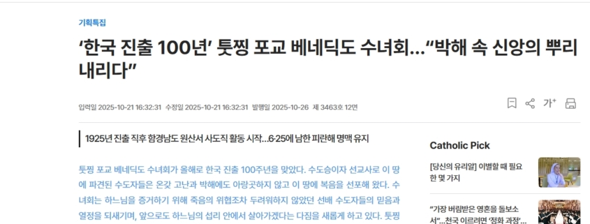 [가톨릭신문] 한국 진출 100주년 기념 영상과 기사