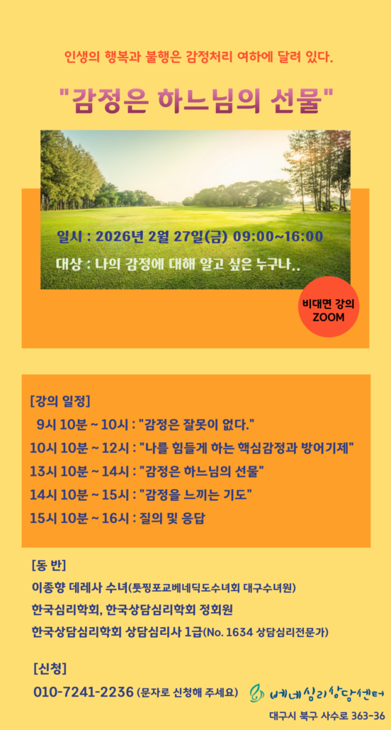https://benedictine.or.kr/wp-content/uploads/2025/12/수정-scaled.png25601371집지기https://www.benedictine.or.kr/wp-content/uploads/2019/04/newlogo2.png집지기2025-12-11 10:55:332026-01-06 16:37:56[모집] 베네심리상담센터 비대면 강의 – “감정의 하느님의 선물”