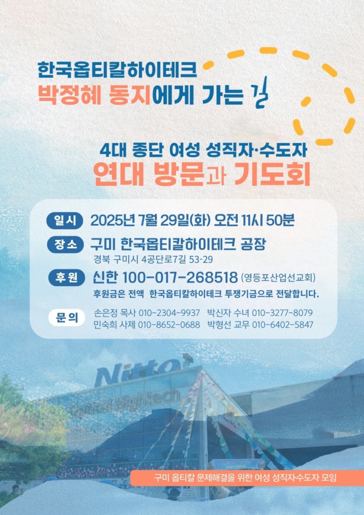 ‘한국옵티칼하이테크 박정혜 동지에게 가는 길’