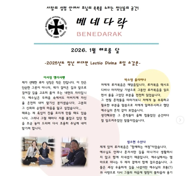 1월 베네다락 소식지2026년 1월 13일/카테고리: 다락풍경 View this post on Instagram Related Posts:6월 베네다락 소식지7월 베네다락 소식지8월 베네다락 소식지9월 베네다락 소식지10월 베네다락 소식지11월 베네다락 소식지12월 베네다락 소식지2월 베네다락 모임3월 베네다락 모임4월 베네다락 모임5월 베네다락 모임[모집] 베네다락, 베네청년독서 모임 https://benedictine.or.kr/wp-content/uploads/2026/01/소식지.jpg 601 638 집지기 https://www.benedictine.or.kr/wp-content/uploads/2019/04/newlogo2.png 집지기2026-01-13 09:42:402026-01-13 09:42:431월 베네다락 소식지