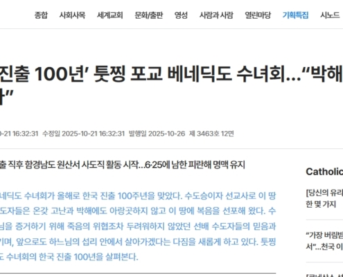 /카테고리: 수녀원 소식[가톨릭신문] 한국 진출 100주년 기념 영상과 기사